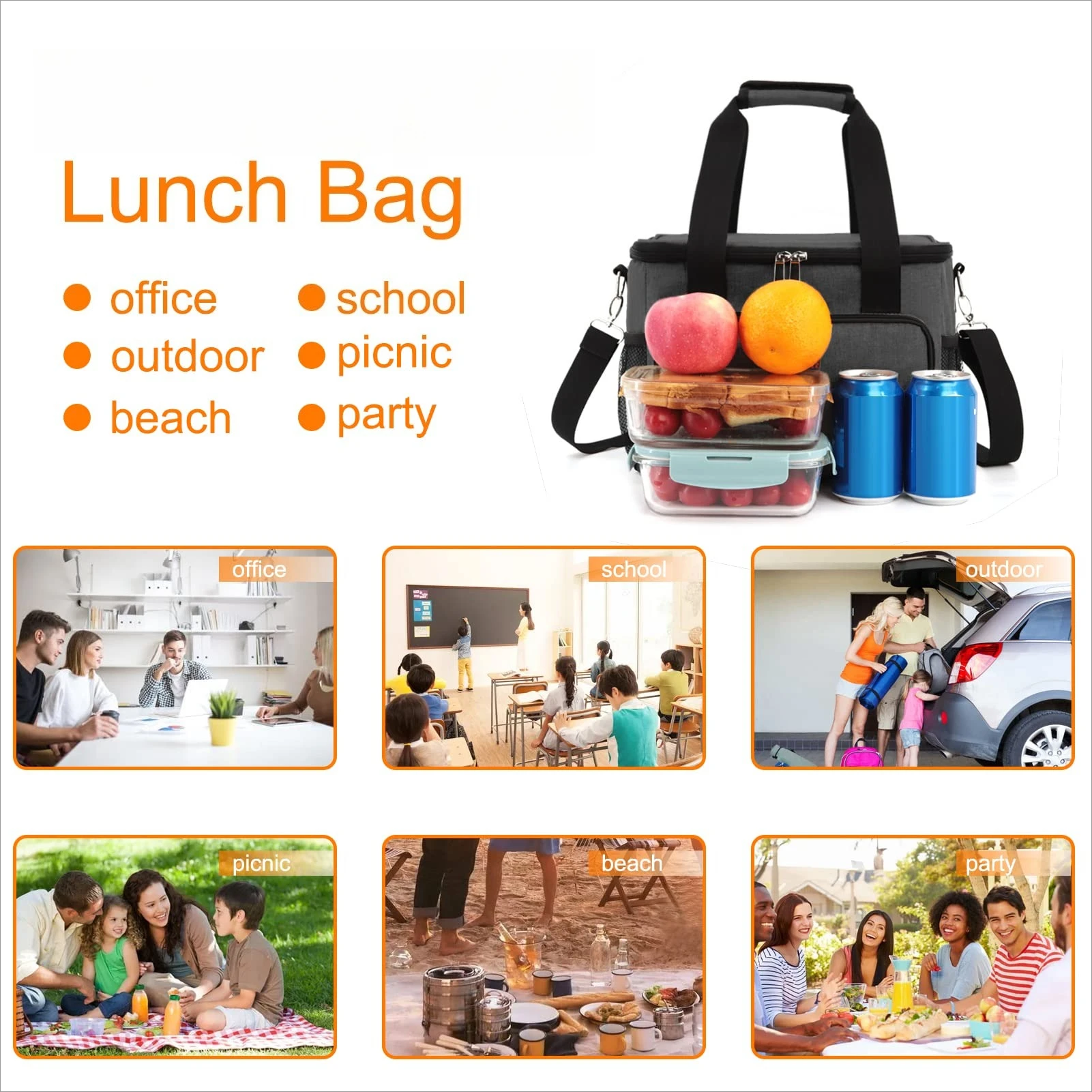 Keep your meals, groceries, drinks, and other items fresh, neat, and easy to carry — whether for work, market, school, gym, church, parties, or trips.!